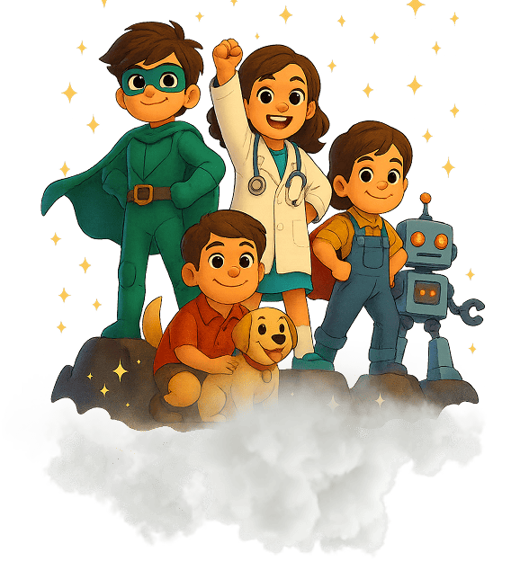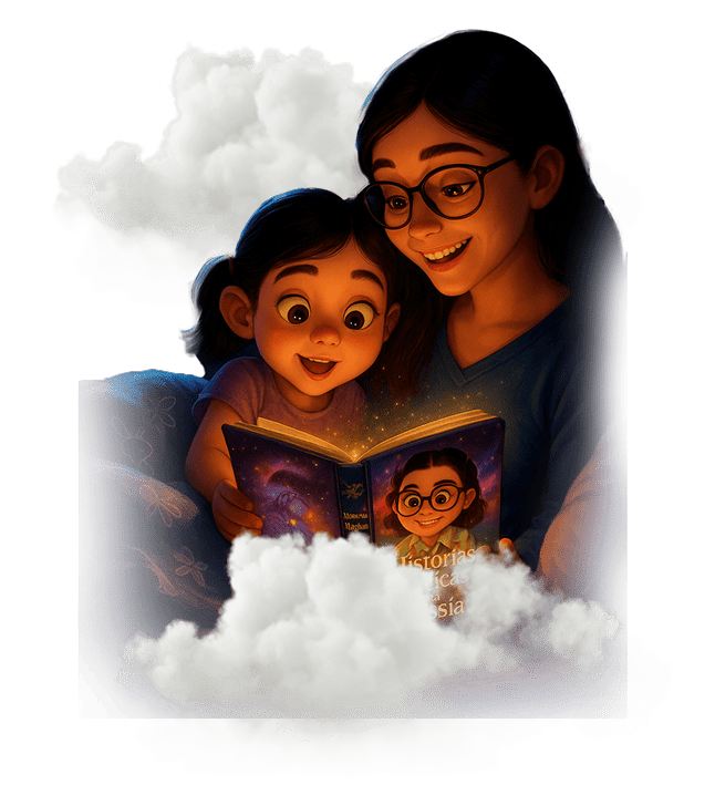 Incluye el cuento totalmente personalizado de 12 páginas a todo color, con ilustraciones o fotos según desees, impreso en tapa dura y hojas duras. Además, tu historia queda guardada en nuestra librería mágica para futuras copias.