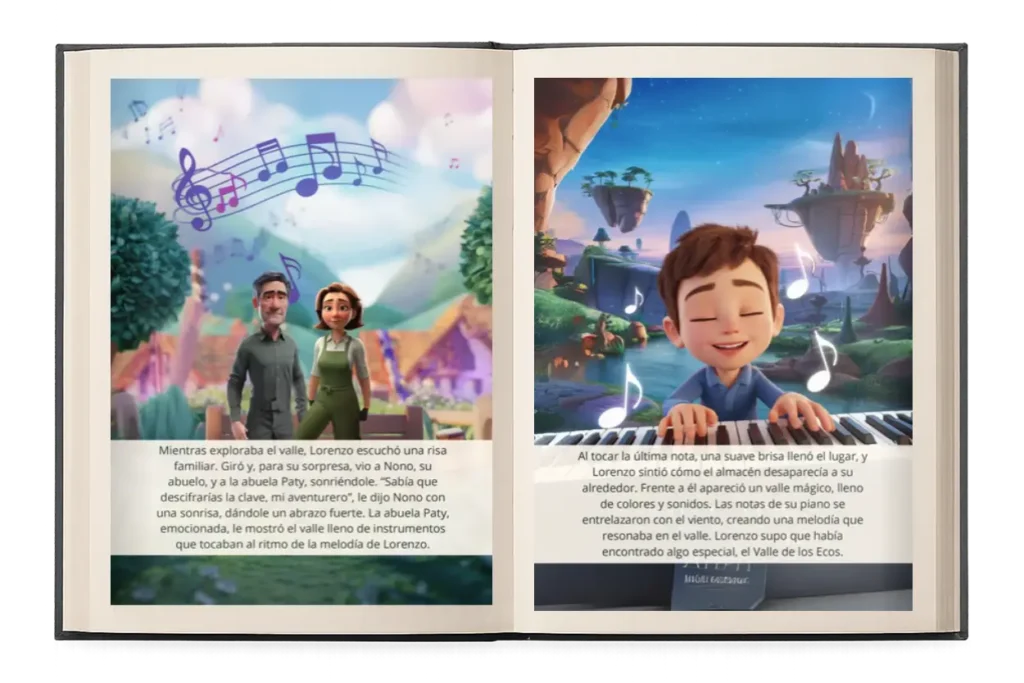Convertimos la historia en un libro premium, con pasta dura, páginas plastificadas y resistente a salpicaduras de agua, impreso con materiales de alta calidad para que dure toda la vida.